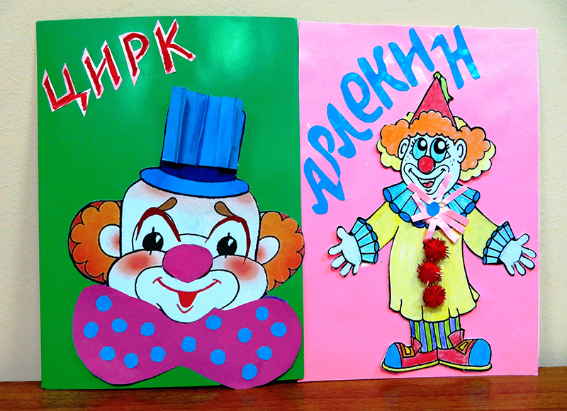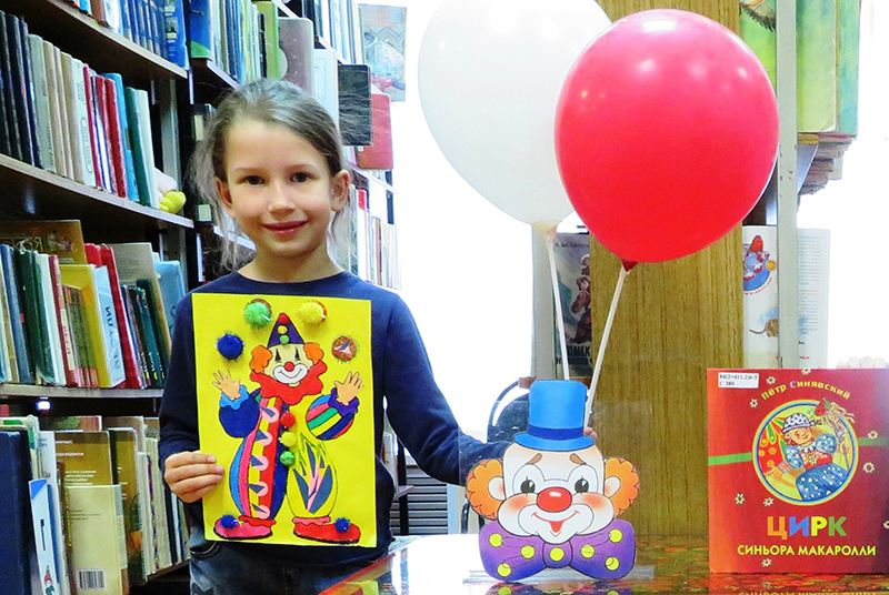 Под руководством библиотекаря «домовята» изготовили из цветной бумаги, картона и шелковых ленточек декоративные панно с изображением портретов смешных клоунов.
