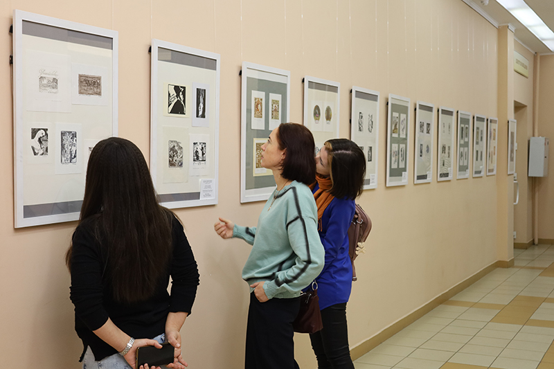 Юбилейный пушкинский год завершился открытием выставки «А.С. Пушкин в экслибрисе». Выставочный проект реализуется библиотекой имени Горького в сотрудничестве с Музеем экслибриса и миниатюрной книги Международного союза общественных организаций книголюбов. На выставке представлены работы участников Международного конкурса экслибриса «Здесь Пушкиным всё дышит», выполненные во всех традиционных графических техниках: офорт, акватинта, меццо-тинто, ксилография, линогравюра.