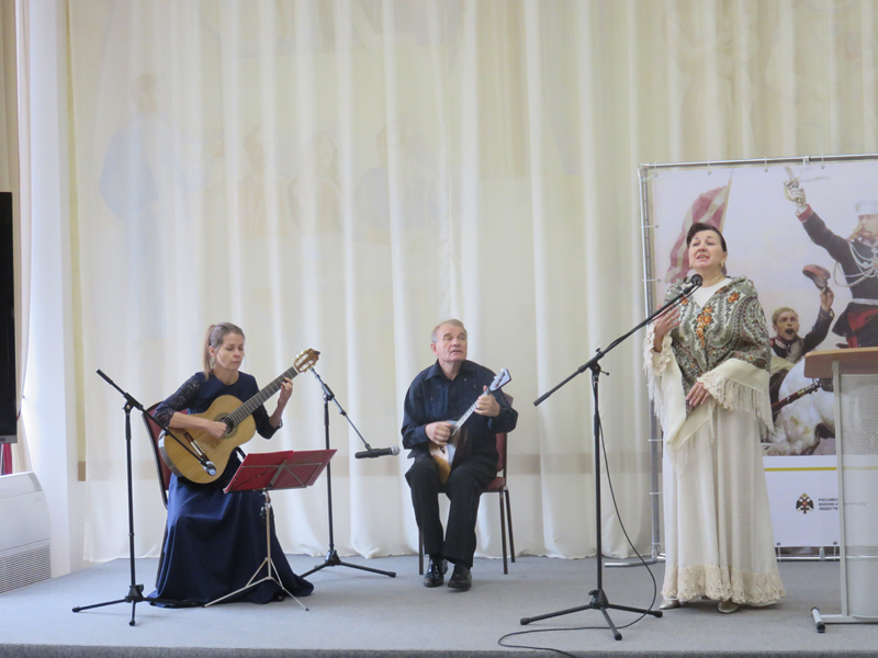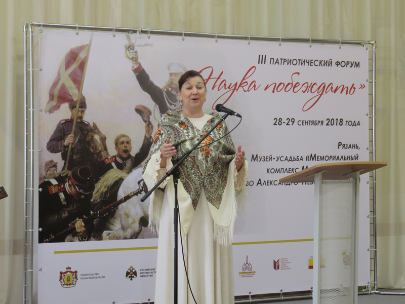 Ведущая Лариса Кукина рассказала о жизни и героическом боевом пути «белого генерала», о славной военной династии Скобелевых, родных и близких генерала, оставивших яркий след в российской истории. Слушатели узнали много интересных фактов, навсегда соединивших имя Скобелева с рязанской землей, о сохранении его памяти. Погрузиться в атмосферу тех далеких событий, глубоко прочувствовать дух времени, масштаб личности и полководческий талант этого выдающегося человека помогли яркие содержательные материалы видеопрезентации с фрагментами из фильмов. Особые краски мероприятию придали великолепные выступления артистов областной филармонии - заслуженной артистки России Ларисы Голиковой, заслуженного артиста России Виктора Колупаева (балалайка), лауреата международных конкурсов Екатерины Астаховой (гитара). В исполнении артистов прозвучали песни «Летела чечетка», «Как на речке было на Фонтанке», «Слово «мама» дорогое».