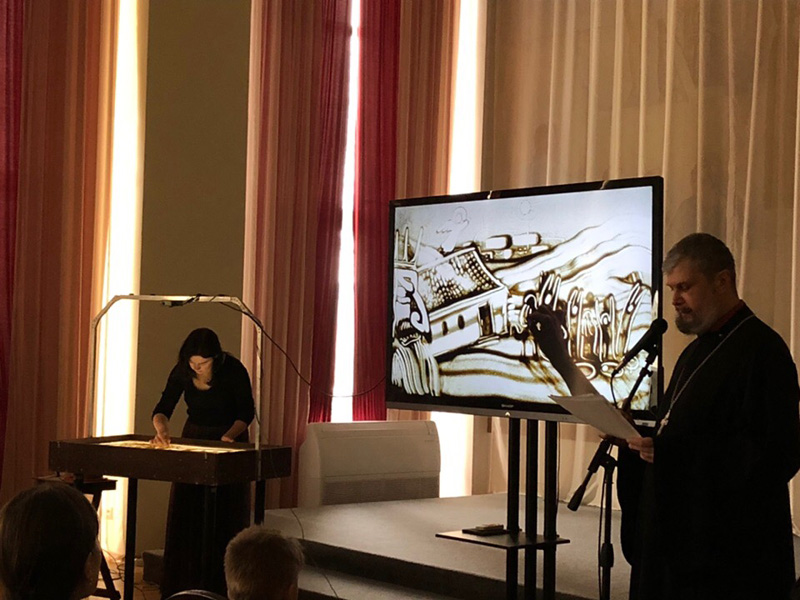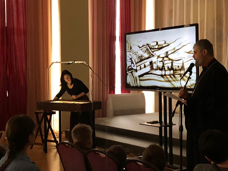 Проект реализуется библиотекой им. Горького и театром песка «БРИМ» совместно с Рязанской епархией Русской православной церкви. Беседа священника Петра Кипарисова «От Рождества Христова до Крещения Господня», проиллюстрированная песочными картинами художника Марины Бритовой, вызвала большой интерес как у детей, так и у взрослых.