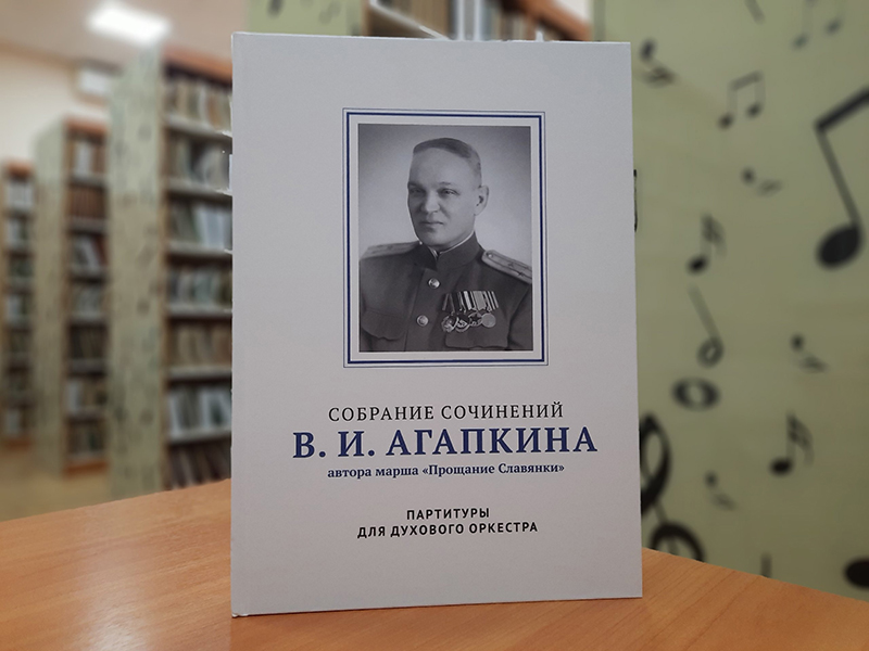 В 2024 году исполнилось 140 лет со дня рождения нашего знаменитого земляка, автора марша «Прощание славянки», композитора и дирижёра Василия Ивановича Агапкина. В юбилейный год вышло в свет подарочное нотное издание «Собрание сочинений В.И. Агапкина. Партитуры для духового оркестра», в которое вошли 22 авторских произведения и 11 оркестровок его произведений. «Собрание сочинений» включает в себя не только сочинения и аранжировки Василия Ивановича Агапкина, но и краткие исторические сведения о том или ином произведении.