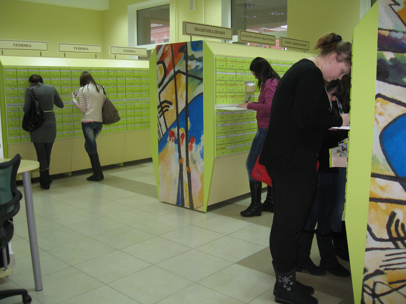 Сотрудники библиографического центра познакомили студентов со справочно-библиографическим аппаратом, провели практическое занятие по работе с каталогами, обучили поиску в карточном и электронном каталогах библиотеки. Студенты научились оформлять читательское требование, познакомились с информационными возможностями сайта www.rounb.ru, подписными базами данных и открытыми ресурсами интернета.