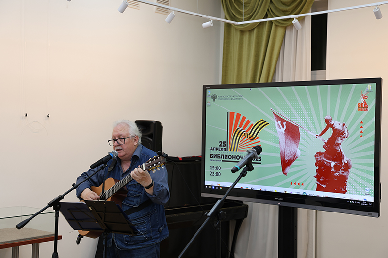 25 апреля в библиотеке имени Горького состоялась ежегодная Всероссийская акция «Библионочь». Тема этого года – «Свои герои». Для гостей мероприятия, приуроченного к Году защитника Отечества и 80-летию Великой Победы, была подготовлена патриотическая программа, прошедшая под девизом «Нет в России семьи такой, где б не памятен был свой герой».