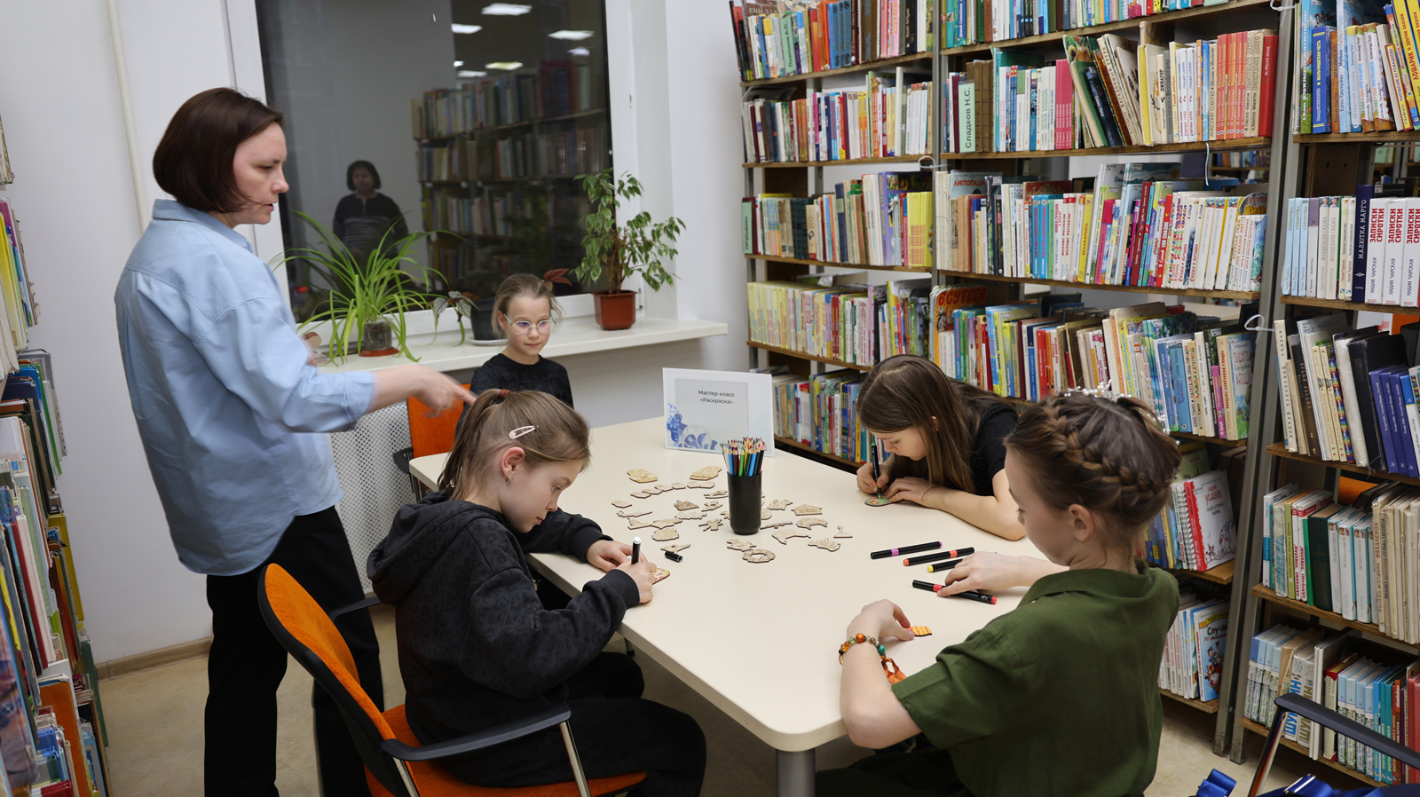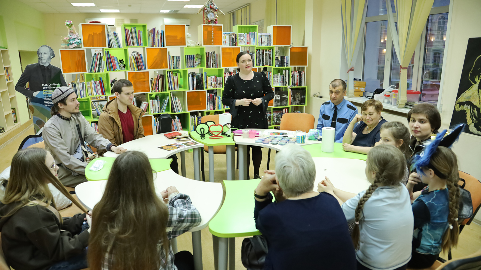 Для самых маленьких посетителей была организована площадка «Библионочь: детское измерение» с настольной игрой «Народы России: путешествие в картинках», мастер-классами «Раскраска» и «В дружном хороводе».