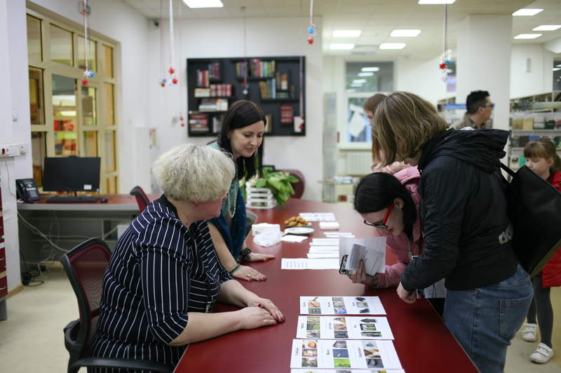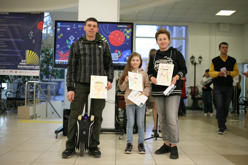 В холле первого этажа библиотеки работал открытый микрофон «Читаем о России», где каждый участник «Библионочи» мог попрактиковаться в чтецком мастерстве, книжная выставка «Традиции живая нить», фотовыставка «Россия. Полет через века». Увлекательный квест «По следам янтарной комнаты» собрал большое количество участников. Подкрепить силы можно было в буфете «Пешков».