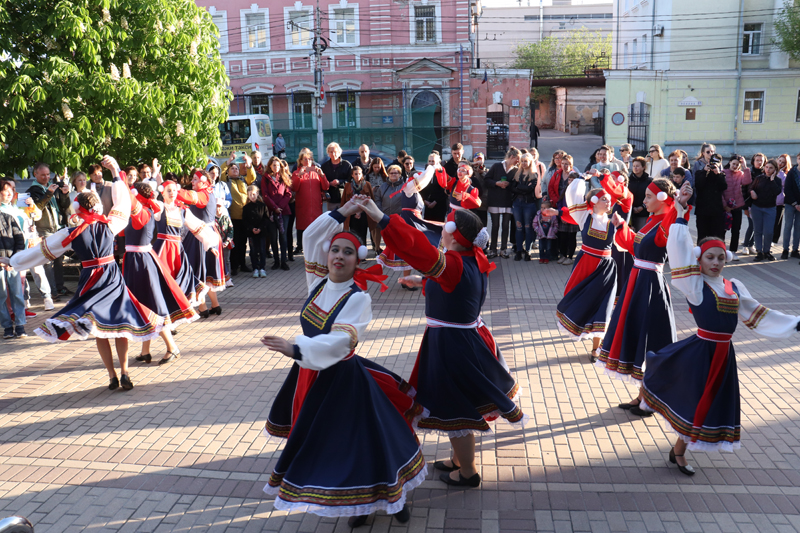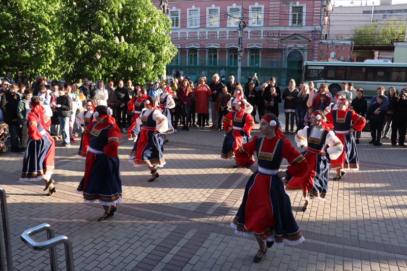 Украшением «Библионочи» стали концерт детского сводного духового оркестра Рязани «Музыкальная мозаика», отрывок из спектакля театральной студии «Шанс» «Вниз по радуге скользя», театральный диалог к 130-летию Константина Паустовского «Беседы о писателе» от Рязанского театра драмы и блистательный бал Петербурга от студии «Белый бал».