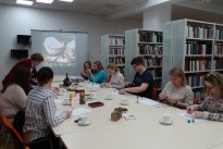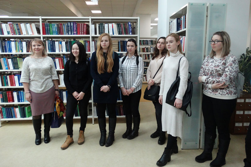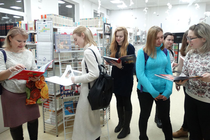 Предваряла урок экскурсия по немецко-французскому читальному залу. Студенты узнали о клубах иностранных языков, работающих в библиотеке, а также об аспектах сотрудничества нашей библиотеки с Немецким культурным центром имени Гете. Особый интерес у ребят вызвала выставка книг на немецком языке «Счастливого Рождества!» из фонда немецко-французского читального зала. Первокурсники оживленно обсуждали высокое качество полиграфического исполнения этих книг.