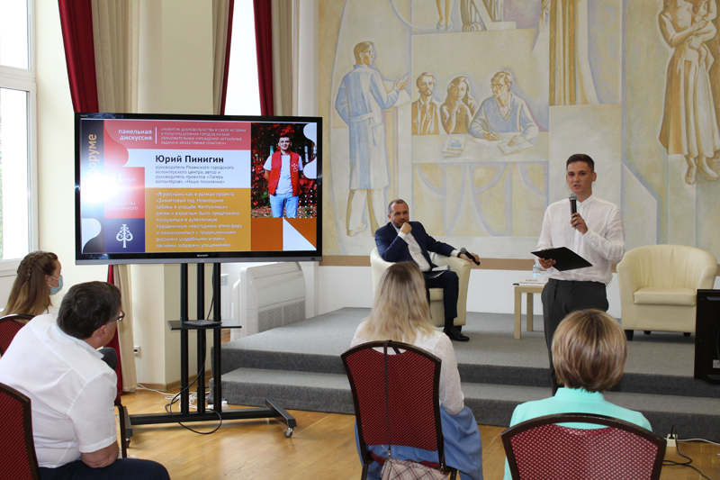 Кроме того, в библиотеке была организована панельная дискуссия «Развитие добровольчества в сфере истории и культуры древних городов на базе образовательных организаций: актуальные задачи и эффективные практики». В ее рамках учащиеся образовательных организаций Рязанской области презентовали эффективные практики реализации добровольческих проектов. Авторы проектов продемонстрировали свои разработки в сфере сохранения истории родного края, краеведения и культуры.