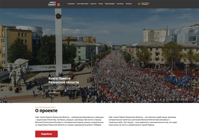 – Работа над сбором данных Книги Памяти Рязанской области была начата в 1991 году. В настоящее время подготовлено 24 печатных издания. Когда возникла необходимость подготовки новой, современной версии ресурса, правительство Рязанской области и Общественная палата выступили с инициативой его создания, предполагая приурочить выход сайта к 75-летию Великой Победы. В сжатые сроки команда библиотеки, разработчики, студенты рязанских вузов и колледжей, волонтеры сферы культуры смогли провести колоссальный объем работы. Ресурс содержит около 300 000 именных записей. Предусмотрена обратная связь с родственниками героя и возможность добавления фото- и видеоматериалов, писем, воспоминаний. Получился живой, пульсирующий сайт. Мы рады высокой оценке нашего труда. Он отмечен и Российским организационным комитетом «Победа».