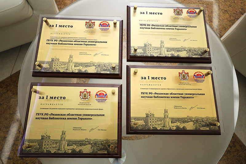 Рязанская областная универсальная научная библиотека имени Горького стала победителем в 4 номинациях: «За сокращение производственного травматизма и профессиональной заболеваемости в организациях непроизводственной сферы», «За развитие кадрового потенциала в организациях непроизводственной сферы», «За формирование здорового образа жизни в организациях непроизводственной сферы», «За развитие социального партнерства в организациях непроизводственной сферы».