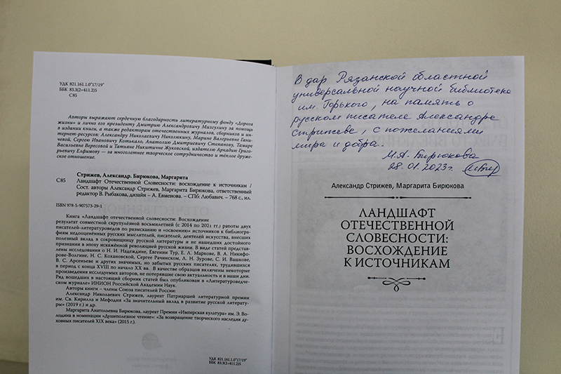 Библиотека получила в дар книгу «Ландшафт отечественной словесности»