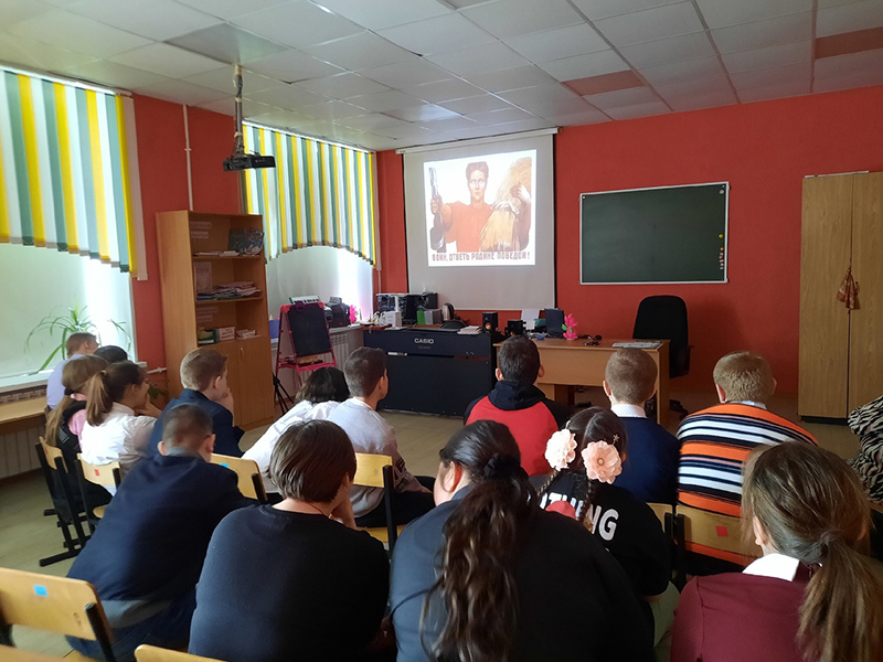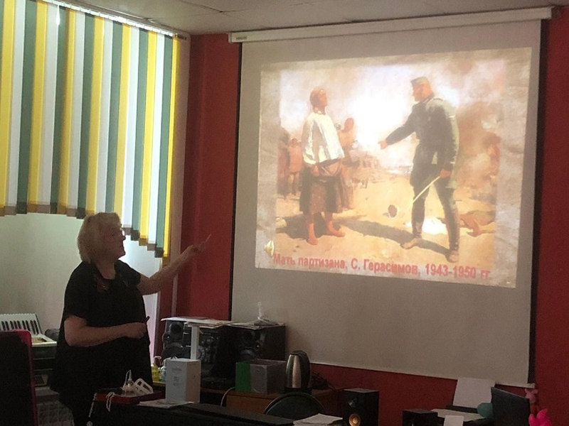 Мальчишки и девчонки познакомились с историей создания знаменитого плаката Ираклия Тоидзе «Родина-мать зовёт!», узнали о защитниках Брестской крепости и Севастополя, чей подвиг запечатлели на своих полотнах военные художники, вспомнили, сколько горя и слёз принес фашизм на нашу землю. Рассматривая работы знаменитых советских живописцев, ребята смогли лучше понять, через какие страдания прошёл наш народ.