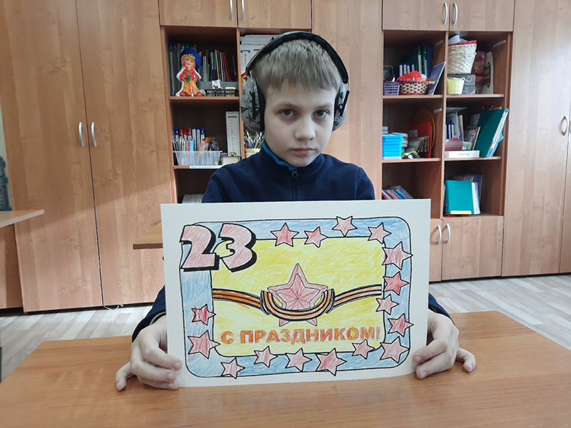 Необходимо было нарисовать открытку к 23 февраля, посвященную защитникам нашего Отечества, особое внимание уделяя участникам Специальной военной операции, ведь в этом году тема конкурса – «Zаветам Vерны».