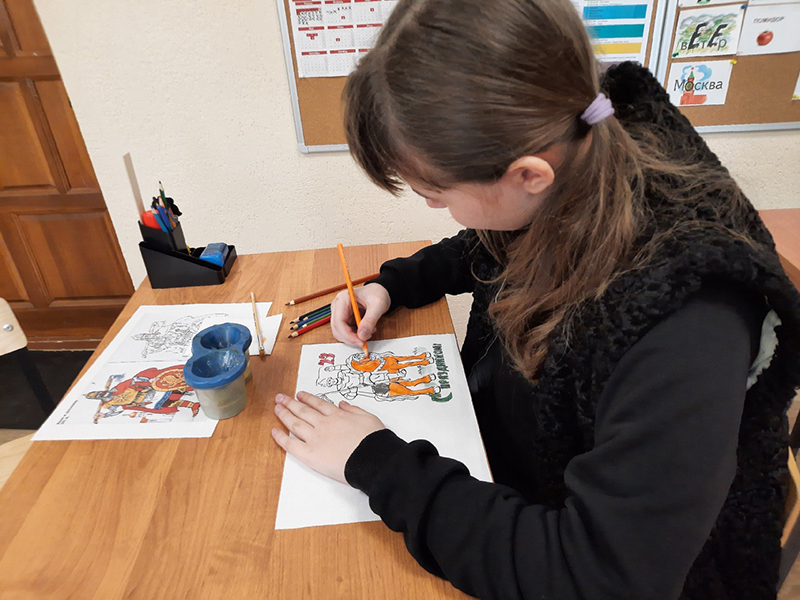 Героями рисунков были выбраны русские богатыри как символ мужества, чести и отваги всех защитников нашей страны. Для создания рисунка мальчишки и девчонки использовали специальные цветные карандаши, которые можно превратить в краски, если добавить немного воды. Такие инструменты помогают ребятам ярче представить героев своих работ и получить новые позитивные эмоции.