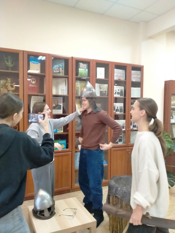 Впечатлившись весом доспехов, студенты примерили шлемы, узнали, что вес кольчуги составляет около десяти килограммов, а полное облачение – около двадцати. В конце игры желающие ответили на вопросы викторины.