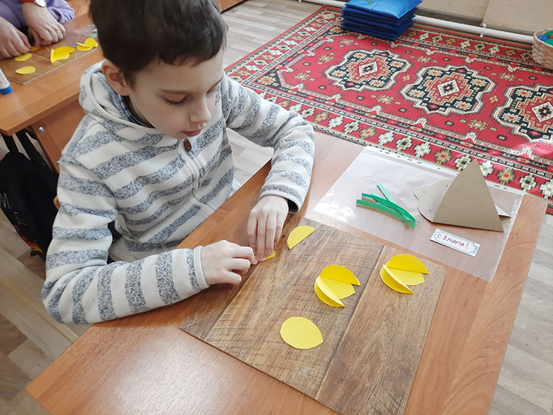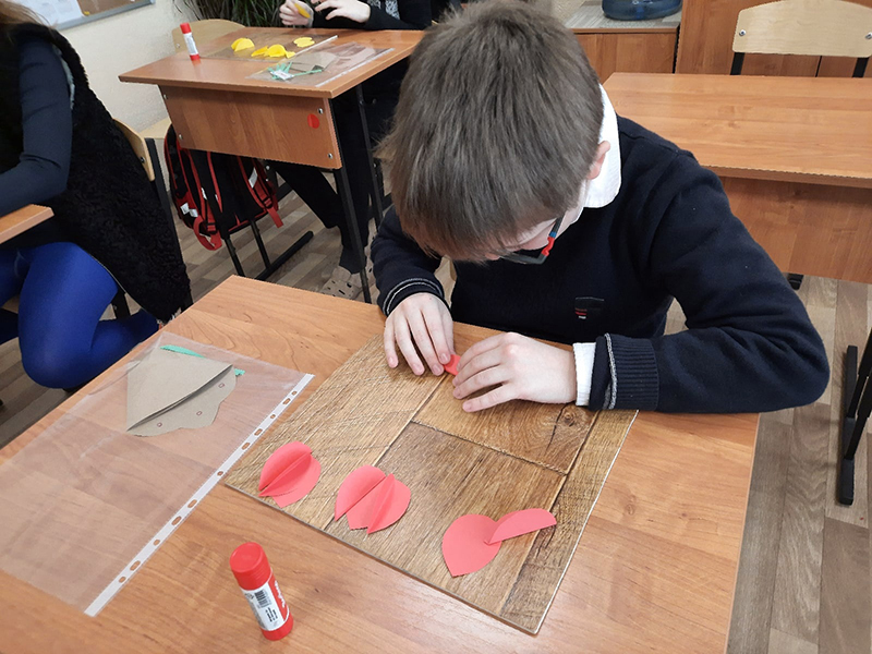 В начале мастер-класса ребята познакомились с конструкцией букета, при помощи клея собрали отдельные лепестки в объемные тюльпаны. Работа только на первый взгляд показалась легкой, на самом деле было не совсем просто приклеить все детали и собрать в единое целое свой букет. Юные мастера с успехом справились с трудностями и результат приятно порадовал всех участников.