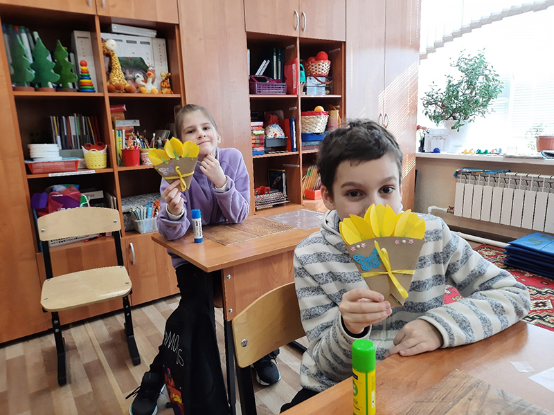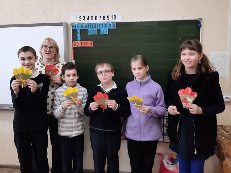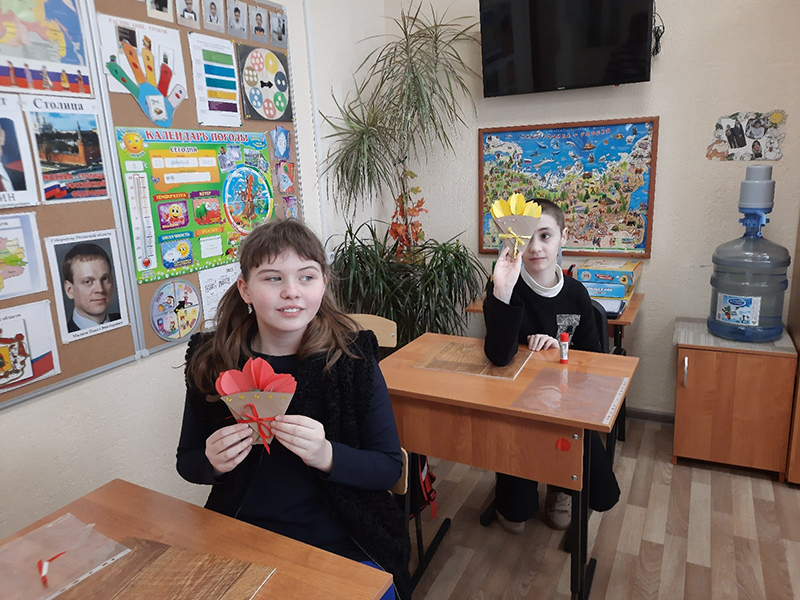 Накануне праздника 8 Марта сотрудники Центра литературы по искусству побывали в гостях у своих друзей, учеников Рязанской школы-интерната, чтобы вместе с ними подготовить праздничные букеты для мам с первыми весенними цветами.