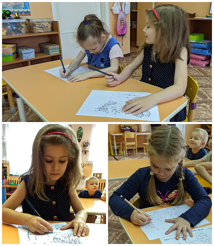 Затем библиотекарь предложила обвести по точкам и раскрасить фигурки животных, собрать яркие паззлы, отделить диких животных от домашних и поселить их в деревне или в лесу. Ребята с большим удовольствием выполнили все задания.