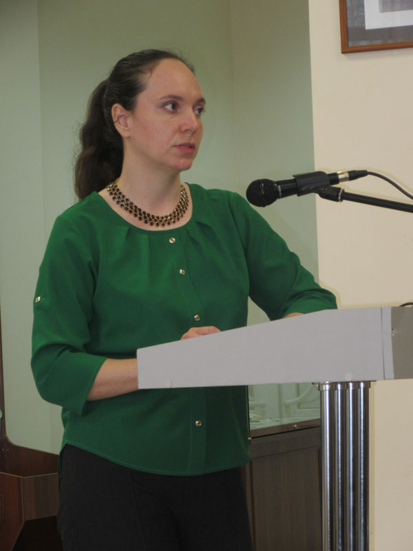 С научными докладами выступили: начальник отдела науки национального парка «Мещера» А.Ю. Косякова, начальник информационно-аналитического отдела регионального Центра защиты леса О.В. Натальская, младший научный сотрудник лаборатории эволюционной экологии РГУ имени С.А. Есенина Е.А. Фионина.