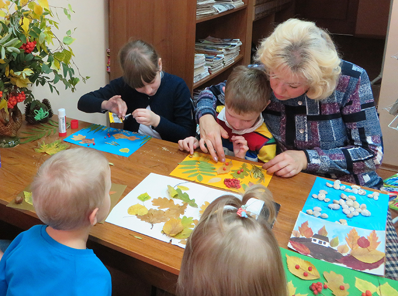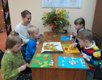 «Домовята» очень изобретательны, всегда готовы на выдумку и умеют удивить. Для создания осенних композиций и красочных панно участники клуба использовали самые разнообразные природные материалы: еловые шишки, сухоцветы, морские камушки, веточки деревьев, кленовые, дубовые и березовые листочки, птичьи перья, рябиновые ягоды, арбузные и подсолнечные семечки. На занятии всем поделкам были даны свои названия, такие как «Осенние домик», «Аист на крыше», «Осенние рыбки», «Рябиновая сказка», «Листопад», «Чудо осени». В работах прослеживаются творческая индивидуальность и фантазия каждого ребенка. Все поделки оригинальны и по-осеннему интересны.