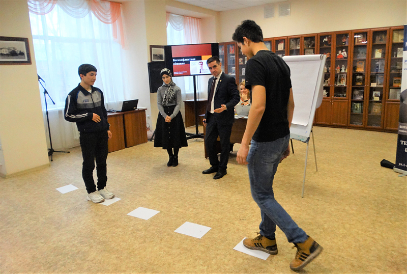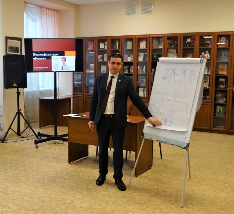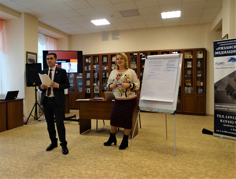 В рамках проекта «Искусство жить вместе» в библиотеке им. Горького прошел тренинг-мастер-класс по бесконфликтному общению. Провели встречу профессиональные медиаторы из Рязанского центра медиации и права Самир Нариманович Гараев, Андрей Владимирович Ромашкин, Ольга Владимировна Богачева, Наталья Владимировна Бубяшова, Наталья Николаевна Перескокова, Наталия Николаевна Иноземцева и Роман Васильевич Солодухо.