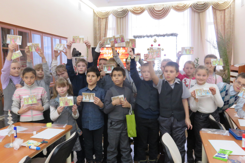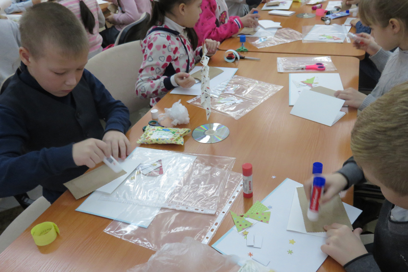 Во второй части предновогодней встречи девчонки и мальчишки с удовольствием мастерили открытки и хвалились результатами своего труда.
