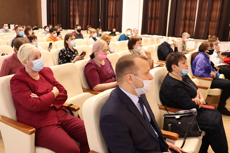 Ведущие встречи, Константин и Анастасия Паскаль, рассказали о Скопинском районе в годы Великой Отечественной войны.
