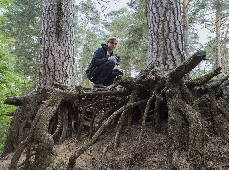 Немало чудесных мгновений удалось запечатлеть пытливому исследователю природы за годы странствий по Мещёре. И за каждым фотоснимком – своя история. Вот что поведал об одном из них Иван Павлович: «У деревьев приспособляемость к жизни поразительна. Взгляните на эти сосны. По стечению обстоятельств они оказались на краю обрыва. Их корни обнажились и, можно сказать, повисли в воздухе. Чтобы выжить, обнажившиеся корни устремились вниз, в почву, как будто бросили спасительный якорь и, углубившись, закрепились основательно. Разве это не чудо!»