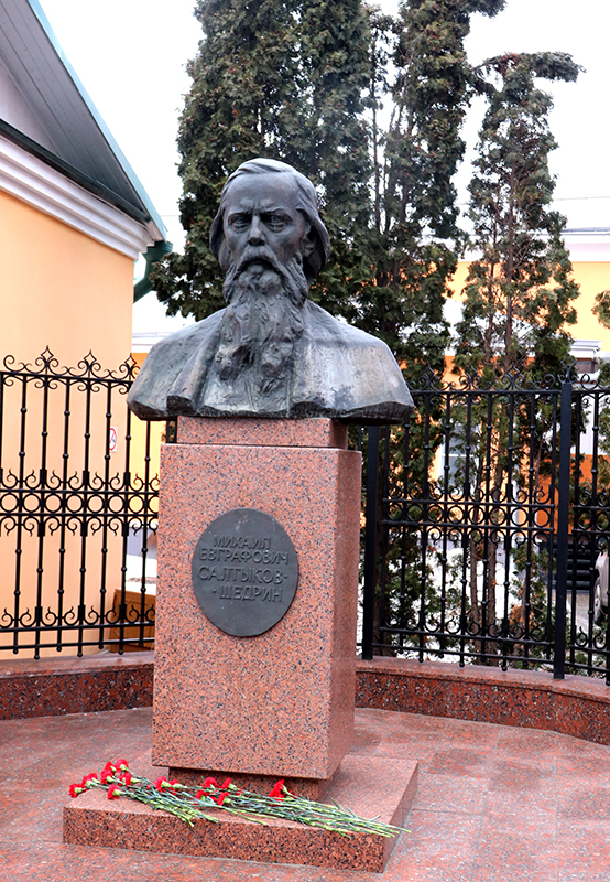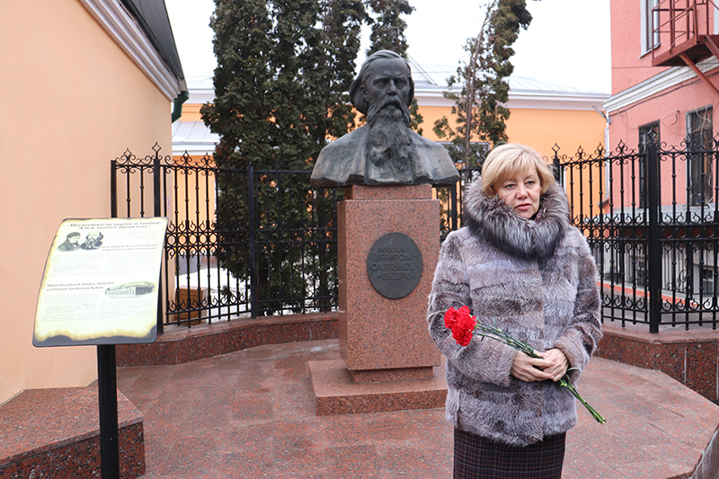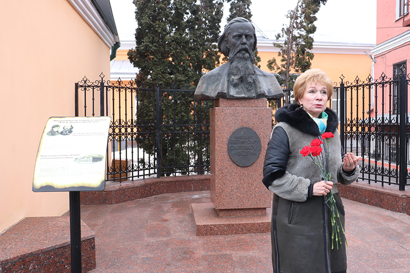 Участники митинга возложили цветы к подножию памятника писателю и гражданину Михаилу Евграфовичу Салтыкову-Щедрину.