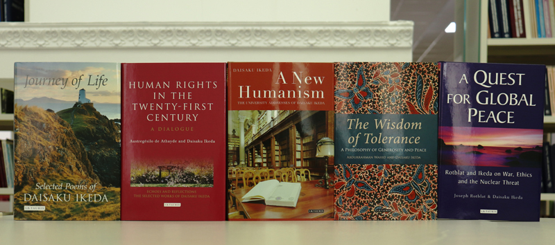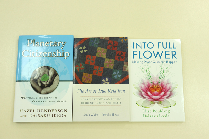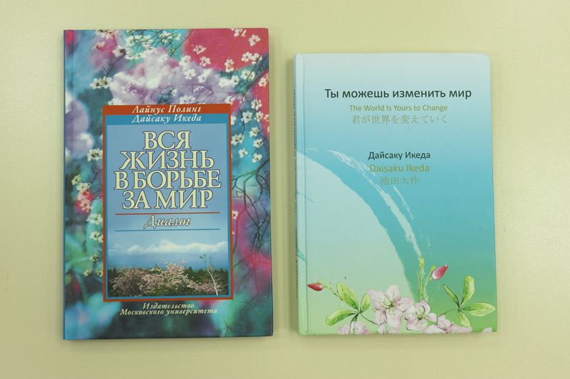 Среди сорока работ, поступивших в «Горьковку», книга-эссе о социальной философии Дайсаку Икеды «Ты можешь изменить мир», сборник эссе, поэзии и фотографий на русском языке «Лепестки сакуры», диалоги, проведенные Икедой с выдающимися людьми Запада и Востока, среди которых английский общественный деятель Арнольд Тойнби, дважды лауреат Нобелевской премии Лайнус Полинг, писатель Чингиз Айтматов, ректор МГУ им. М.В. Ломоносова Виктор Садовничий, космонавт Александр Серебров. Кроме названных, мы получили ряд других книг на русском, английском, японском языках.