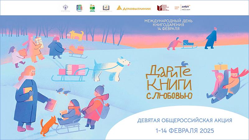 С 1 по 14 февраля пройдет Девятая общероссийская акция «Дарите книги с любовью», приуроченная к Международному дню книгодарения, который отмечается 14 февраля. Инициаторы – Российская государственная детская библиотека и Ассоциация «Растим читателя» при поддержке Министерства культуры Российской Федерации, Российского книжного союза и Ассоциации книгораспространителей.