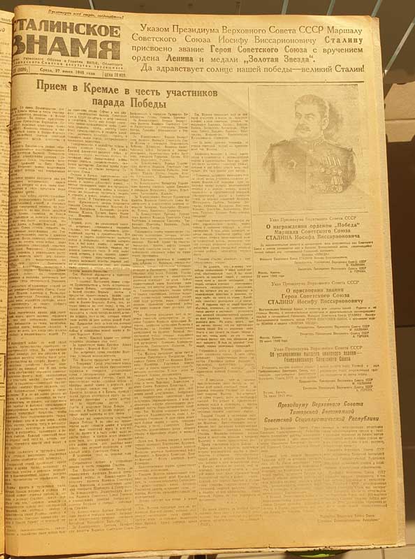 Соответственно, в трех номерах «Сталинского знамени» (№№ 123–125 за 24 – 27 июня 1945 года) публиковалась информация, касающаяся проводимого 24 июня 1945 года парада.