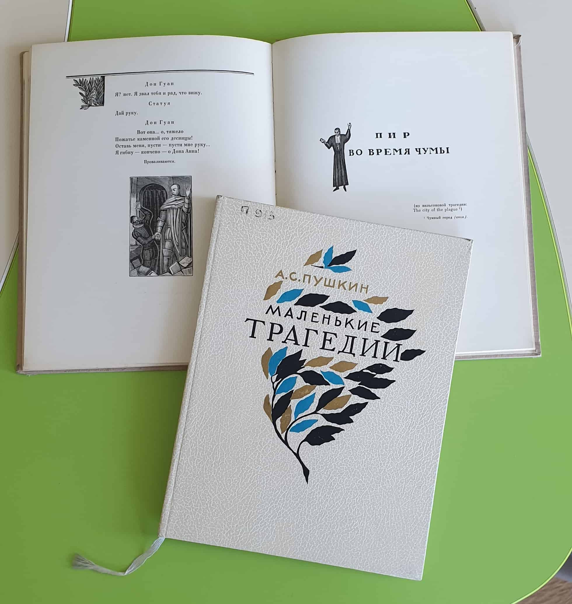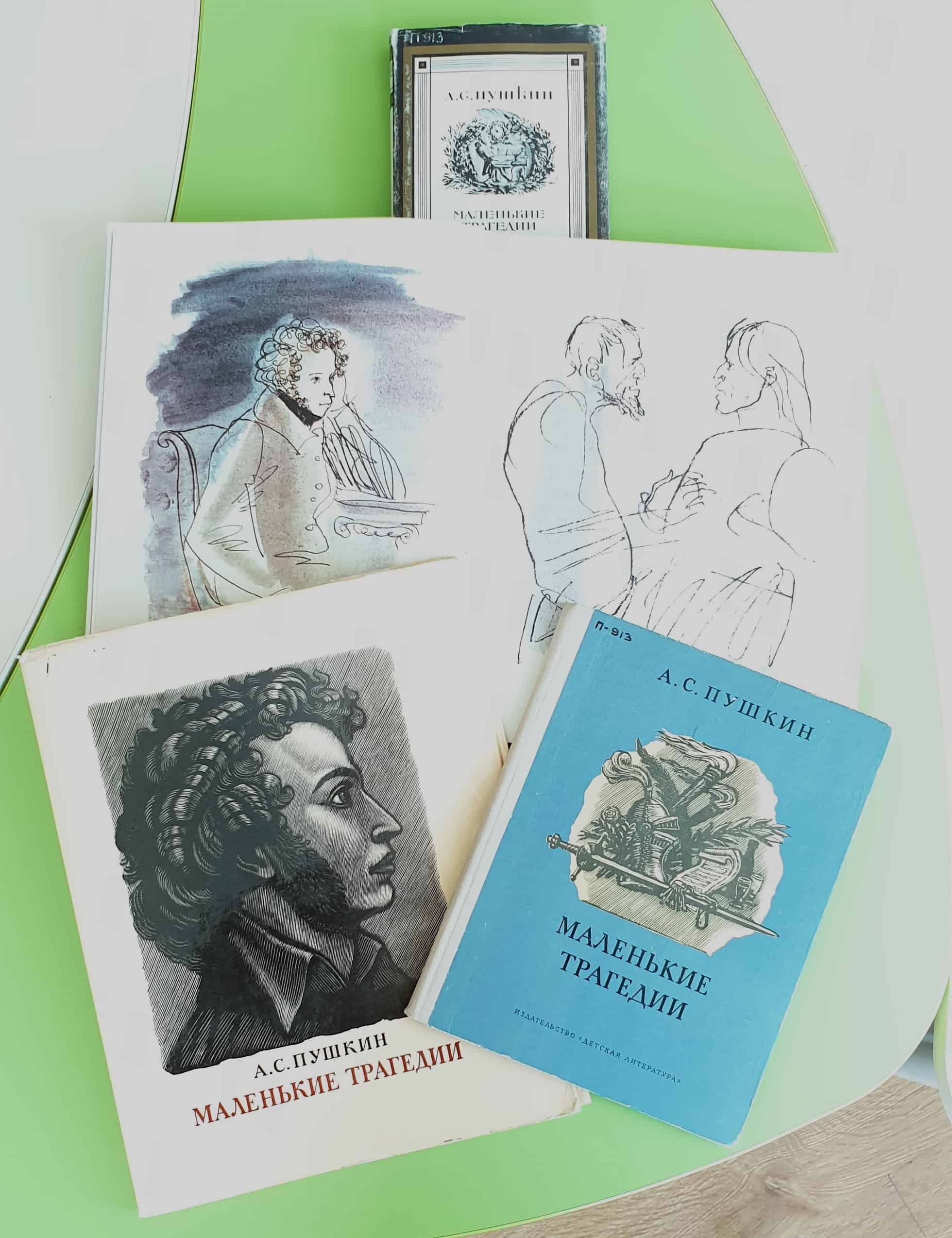 В фонде библиотеки имеются разнообразные издания «Маленьких трагедий» Пушкина, в том числе экземпляры из коллекции «Лауреаты конкурса «Искусство книги» за уникальное полиграфическое оформление. Вниманию читателей также предлагается разнообразная исследовательская литература.