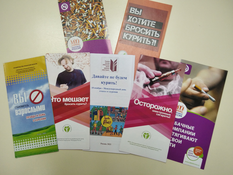 Многие знают о вреде курения, но продолжают затягиваться табачным дымом. Этот день для тех, кто хочет бросить пагубную привычку и вести здоровый образ жизни. Акция «Давайте не будем курить!» состоялась для читателей и посетителей библиотеки, учащихся общеобразовательных школ №3 и №7 г. Рязани и студентов Рязанского политехнического колледжа. Каждый из участников акции получил буклеты с полезной информацией, направленной на профилактику табакокурения, и был проинформирован о губительном влиянии никотина.