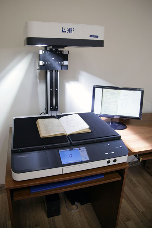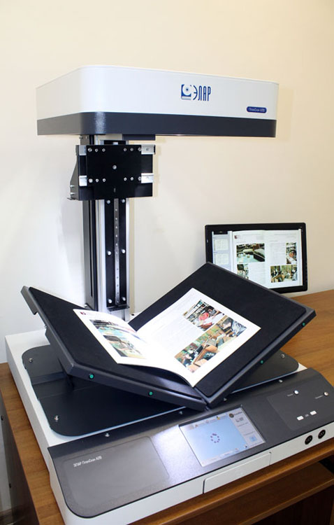 Преимуществом оцифровки на планетарном сканере является возможность сканирования документов форматом до А2, а также трудно раскрываемых книг с жестким переплетом при помощи V-образной колыбели.
