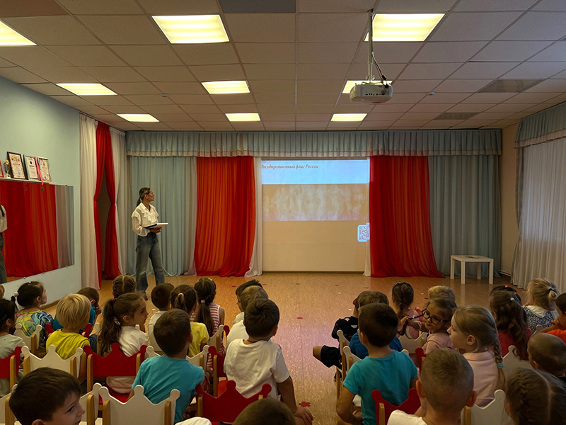 Занятие прошло в дружелюбной и творческой атмосфере. Маленькие участники узнали о значении и символике главного флага страны. Библиотекари рассказали детям о цветах флага и их смыслах, а ребята с интересом включились в обсуждение, задавали вопросы и делились своими мыслями. Для них были подготовлены познавательные и весёлые игровые задания, а также показаны видеофрагменты из электронной коллекции «Государственная власть», доступной на портале Президентской библиотеки.