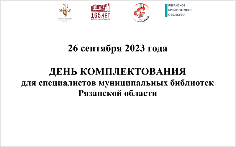 26 сентября в образовательном центре библиотеки имени Горького прошло третье заседание в рамках проекта «День комплектования». Это новый проект, направленный на повышение профессиональных знаний специалистов-комплектаторов библиотек муниципальных образований Рязанской области, библиотек других систем и ведомств. Участников мероприятия приветствовала директор Рязанской областной универсальной научной библиотеки имени Горького, председатель Общественной палаты Рязанской области, кандидат психологических наук Наталья Николаевна Гришина. Она поблагодарила присутствующих за участие в комплектовании фондов и создание модельных библиотек в рамках национального проекта «Культура», обозначила основные направления работы муниципальных библиотек.
