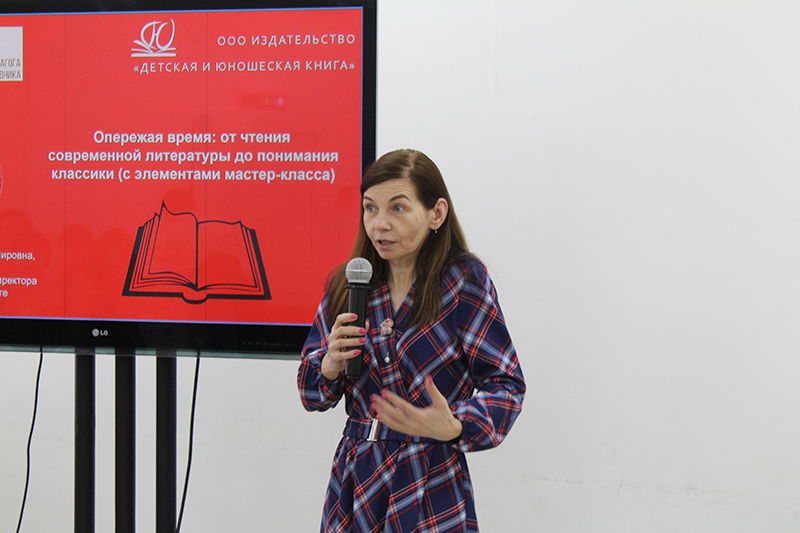 Гостья из Москвы, Наталья Владимировна Песчанская, заместитель генерального директора по методической работе издательства «Детская и юношеская книга», провела мастер-класс «Опережая время: от чтения современной литературы до понимания классики».