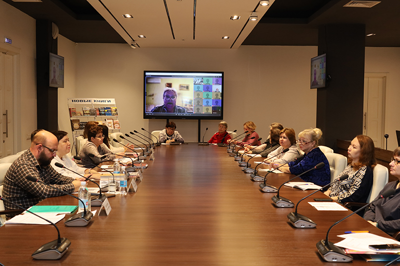 Модератором встречи выступила Елена Михайловна Цикина, главный библиотекарь отдела формирования фондов библиотеки имени Горького.