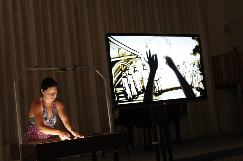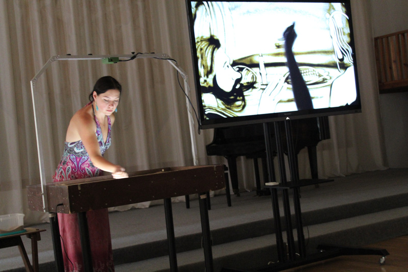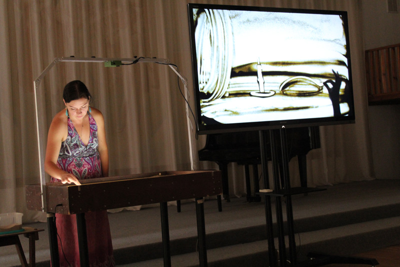 Художественное оформление в стиле песочной анимации для рассказа батюшки создала художник Марина Бритова. Зрители увидели завораживающие картины, передающие библейский рассказ о том, как на пятидесятый день от Воскресения Христова апостолы, осененные Святым Духом, получили способность и силу для проповеди христианского учения всем народам.