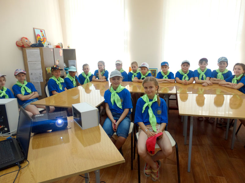 День был яркий, напоенный ароматами сосен и разнообразных цветов. В лагере «Солнечный» в Солотче работали сразу четыре площадки. На открытой веранде для старших отрядов состоялась слайд-лекция «К.Э. Циолковский – основоположник космонавтики», в которой собраны сведения о биографии знаменитого земляка, его открытиях и научных трудах, памятных местах в Рязанской области. В кружковых комнатах ребята помладше поучаствовали в интерактивной игре-беседе «Покорение бесконечности», получив призы за ответы на вопросы викторины по истории космонавтики. Самые маленькие с удовольствием играли в «космические» подвижные игры.