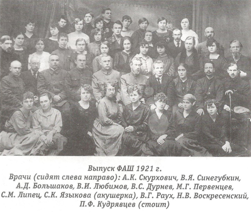 Фото «Выпуск из ФАШ. 1921 г.» из книги: Вологжанина Г. П. Памятью пронзая время… – Рязань, 2010. – С. 35.
