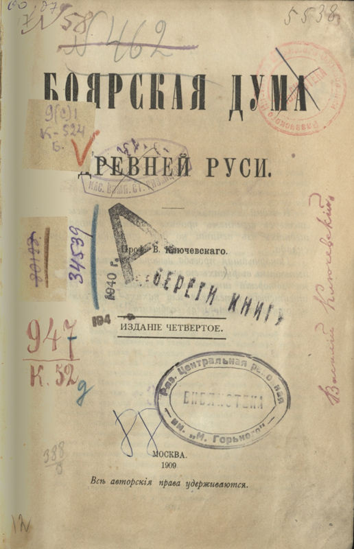 25 мая 1911 г. было созвано заседание Рязанской ученой архивной комиссии. С.Д. Яхонтов, выступивший с основным докладом, специально заострил внимание на том, что труды Ключевского оказали влияние не только на ученых из университетской среды, но и на сотни провинциальных любителей родной истории из отдаленных уголков страны, давая им импульсы к самостоятельному творчеству. «Его университ[етские] и академич[еские] лекции в литографированном виде, – писал Яхонтов, – облетели не только все университетские города, но и отдаленные уголки нашей обширной России. Его историческими взглядами жила с начала 80 годов не только вся учащаяся молодежь, но и масса образованных лиц, интересующихся родной историей».