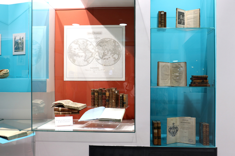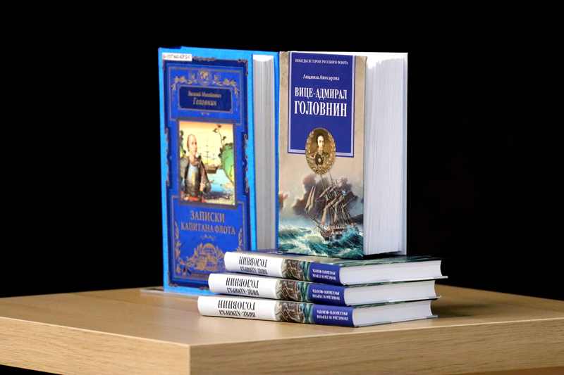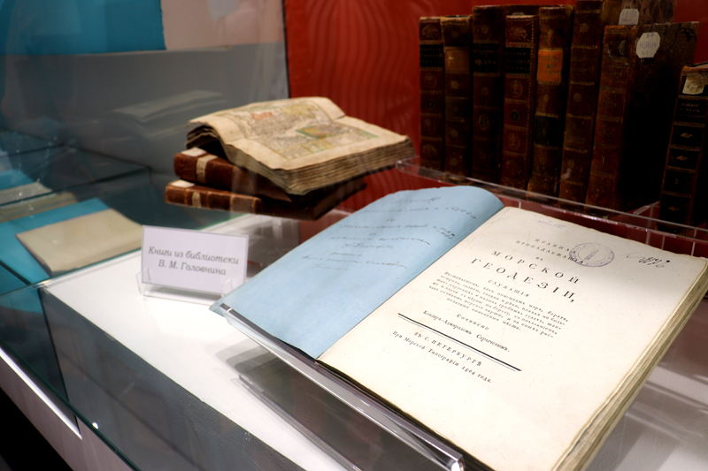 На выставке представлены редкие и ценные издания по географии, истории русского флота, описания путешествий русских мореплавателей конца XVIII – начала XIX веков, в том числе дореволюционные издания сочинений Василия Головнина, книги из личной библиотеки вице-адмирала и издания, принадлежавшие членам его семьи.
