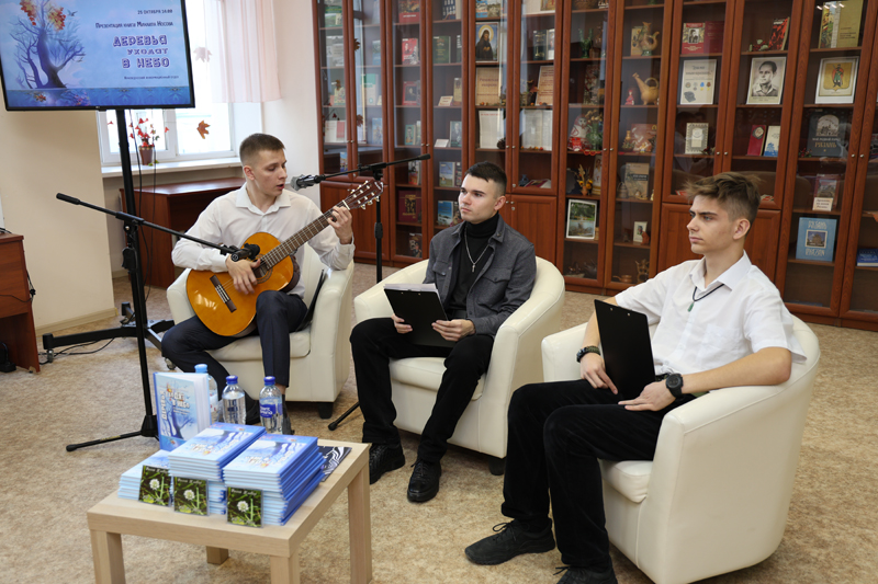 В библиотеке состоялась презентация книги Михаила Носова «Деревья уходят в небо». Михаил Носов – поэт, музыкант, выпускник Рязанского колледжа электроники, член литературного актива Рязанского регионального отделения Союза писателей России. Михаилу двадцать два года, стихи пишет с детства. Несмотря на молодой возраст у поэта сформировался яркий творческий почерк, он пишет актуальные и социально ориентированные стихотворения, предпочитая короткую строку, нестандартные рифмы и «ударный» ритм.
