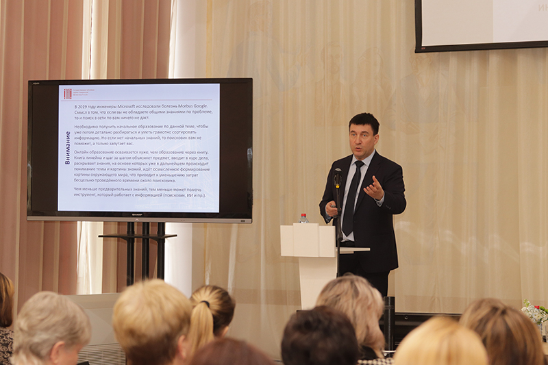 Александр Сергеевич Карауш, генеральный директор Государственной публичной научно-технической библиотеки России, вице-президент Национальной библиотечной ассоциации «Библиотеки будущего», кандидат технических наук, высоко оценил участие библиотек разных ведомств в работе конференции, заинтересованность участников в обсуждаемых вопросах конференции. В своем выступлении он осветил спектр актуальных проблем цифровизации, рассказал о развитии информационно-библиотечной сферы для достижения технологического лидерства страны, а также дал обзор современного применения средств искусственного интеллекта, вызвав неподдельный интерес у слушателей.