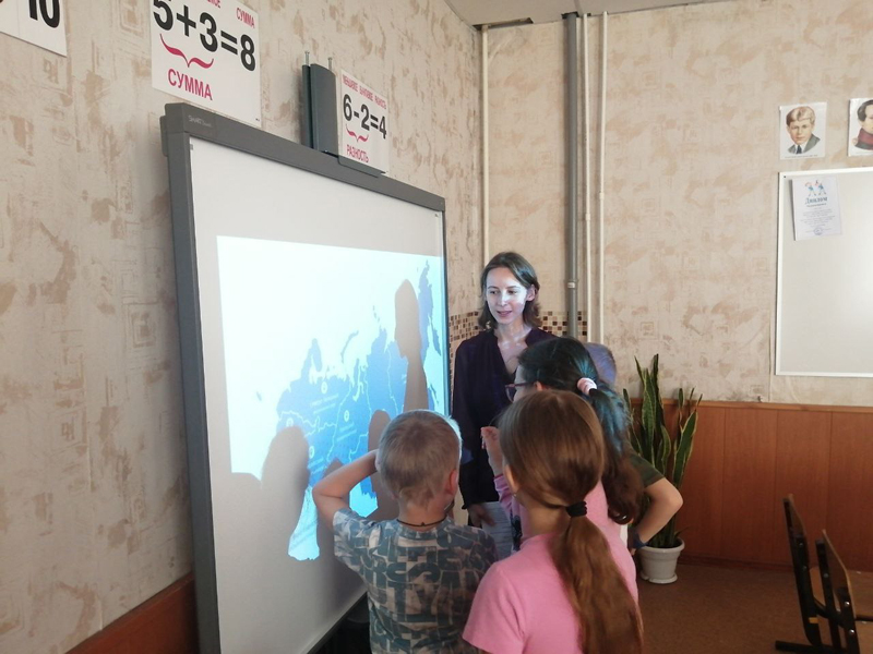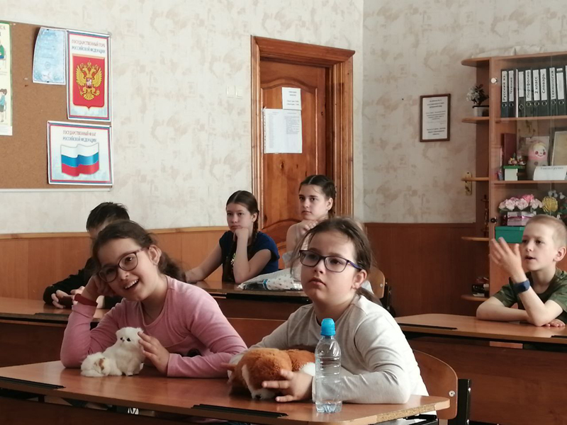 Часть занятия была посвящена официальным и неофициальным символам государства. Школьники узнали, как появились российские Герб, Флаг и Гимн и что они означают, разобрались, для чего нужен государственный язык. С интересом дети поговорили о столице России – Москве, вспомнили свое посещение Кремля и Красной площади. Как наглядные пособия на занятии использовались презентации, видеоролики, фотографии.