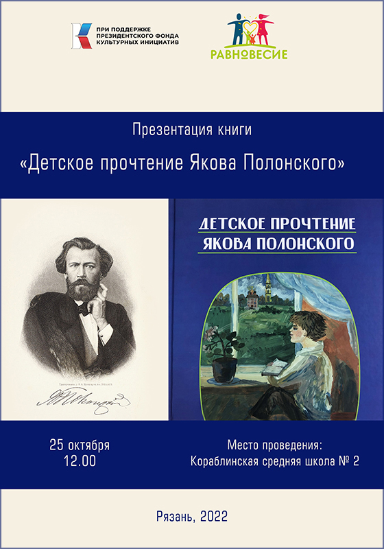 Команда проекта «Детское ПроЧтение Якова Полонского» Рязанской региональной общественной организации по поддержке семьи и сохранению семейных ценностей «Равновесие» представила на Кораблинской земле сборник произведений поэта, вышедший в издательстве ГБУК РО «Библиотека им. Горького» благодаря поддержке Президентского фонда культурных инициатив.