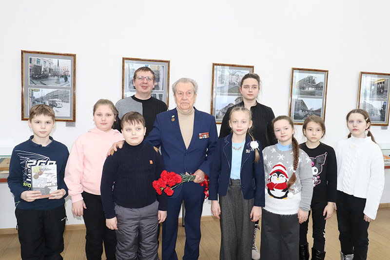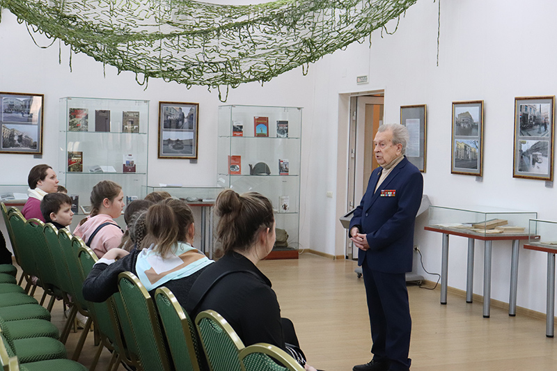 Геннадий Николаевич Соколов, председатель рязанского общества «Жители блокадного Ленинграда», является давним другом Троицкой школы. Именно он и пригласил их на встречу в стенах библиотеки. После воспоминаний Геннадия Николаевича сотрудник универсального читального зала провела ребят по выставке, рассказывая не только о книгах, но и событиях той страшной поры.
