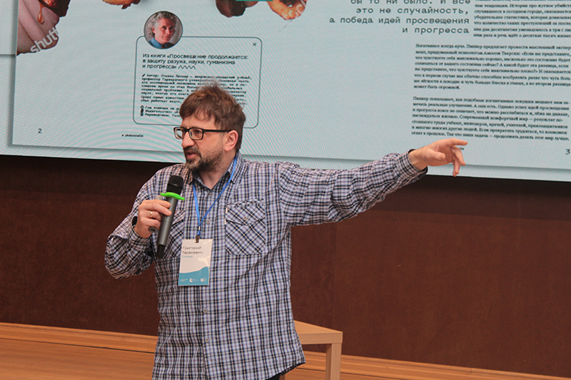 В рамках Первой региональной школы волонтеров науки «Внуки Циолковского» состоялась лекция Григория Тарасевича, российского журналиста, популяризатора науки, публициста, педагога, основателя и главного редактора научно-популярного журнала «Кот Шрёдингера».